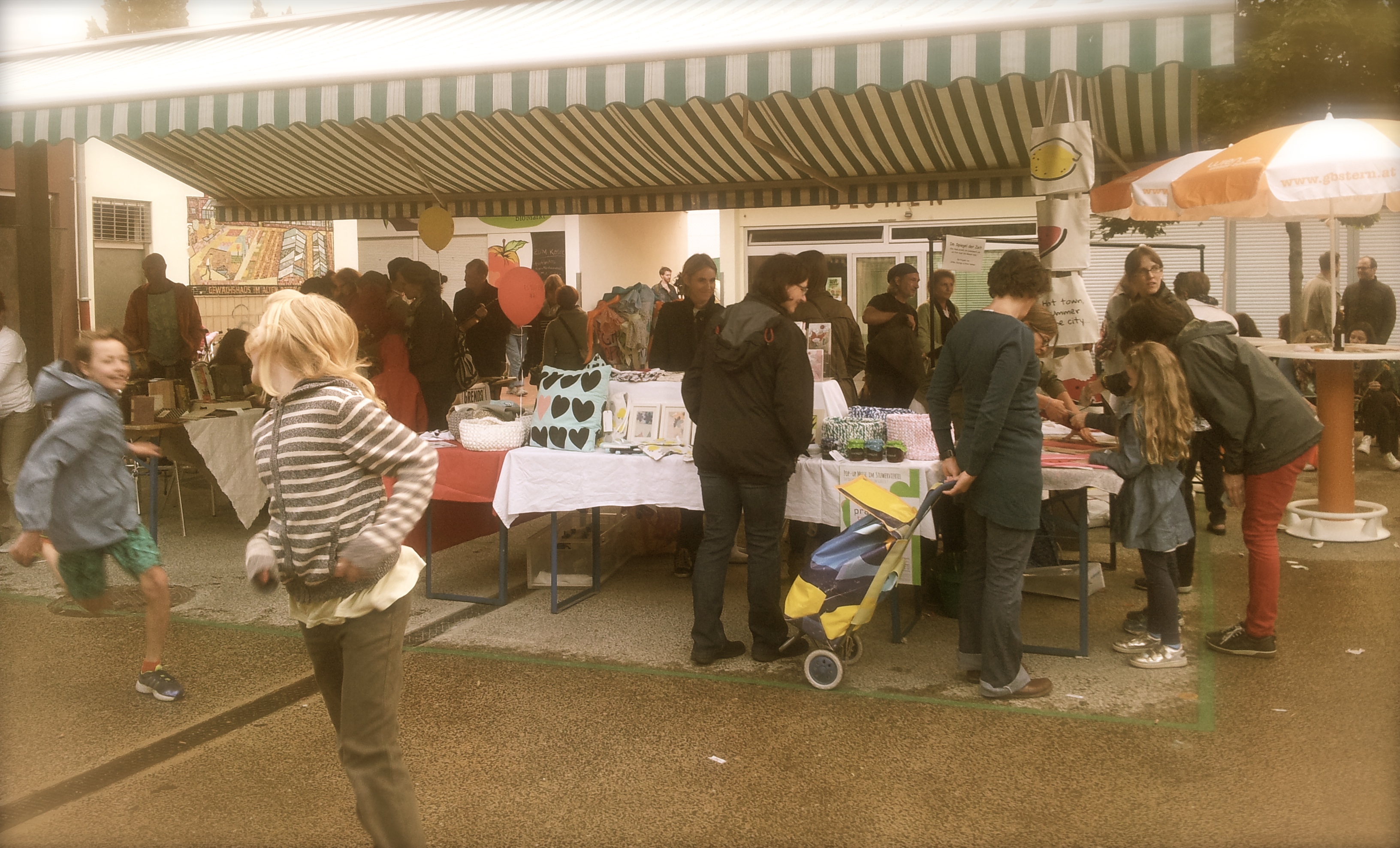 Da ist einmal so richtig was los im Grätzl – nämlich Schmankerlpfad, Pop-up Messe und Kulturfest in einem – und ich bin nicht dabei! Jedenfalls nicht von Anfang an. Offizieller Start war letzten Freitag um 15 Uhr, gegen 20 Uhr schaffte ich es endlich hin. Mir klappte fast die Kinnlade herunter, denn so hatte ich den Markt noch nicht erlebt: Menschen wohin ich blickte, in einer der Marktgassen ein Gedränge wie in der Getreidegasse in Salzburg, der Platz voller Leute, Lachen, gute Laune, Familien, die bunten Tische der Aussteller – schön! Ein Fest für alle Altersgruppen. Der wochenlange Einsatz der engagierten Organisatoren ging voll auf!